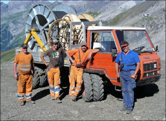 Einziehen eines Sektorenkabels auf Travostation 380 V für Bergrestaurant und Alphütten auf der Axalp im Herbst 2010